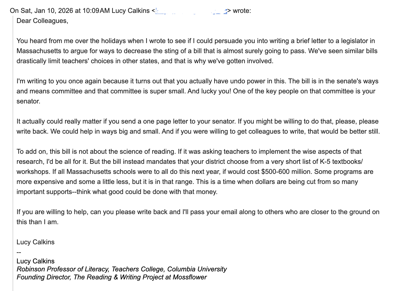 Thank you, Karen. I’ve been really trying to understand the pros and cons of the MA legislation. As a parent of young children in a Units of Study district, my instinct is this can’t come soon enough. The MA Teachers Association strongly opposes the bill, and I recently attended a webinar they hosted to try to gain understanding of their perspective. I am glad to read that you support MA moving forward with this, and I feel more confident in standing behind it after reading this.