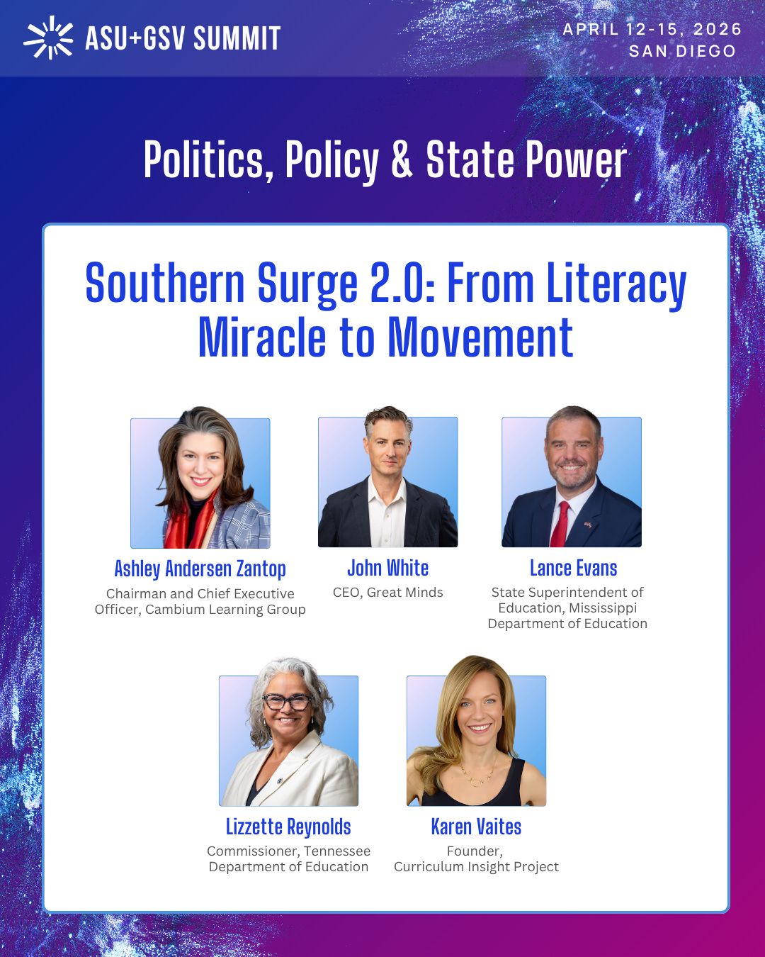 Next week, I’m excited to moderate the Southern Surge panel at ASU+GSV. What do you want to hear from these leaders? Let me know in the comments.